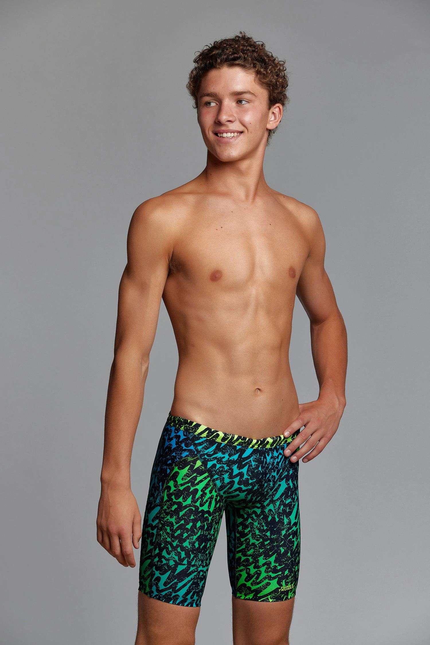 Made from Funky Trunks exclusive C-Infinity fabric, a 100% Italian polyester that is a colourful breakthrough in chlorine resistant fabric technology! The superior choice for swimmers, C-Infinity has exceptional strength and can retain its durability far beyond other elastane swimwear fabrics. Ideal for frequent pool use for recreational and performance based swimming.